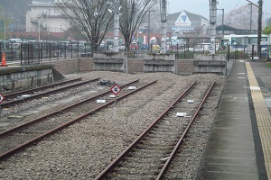 ホームより見た車止め