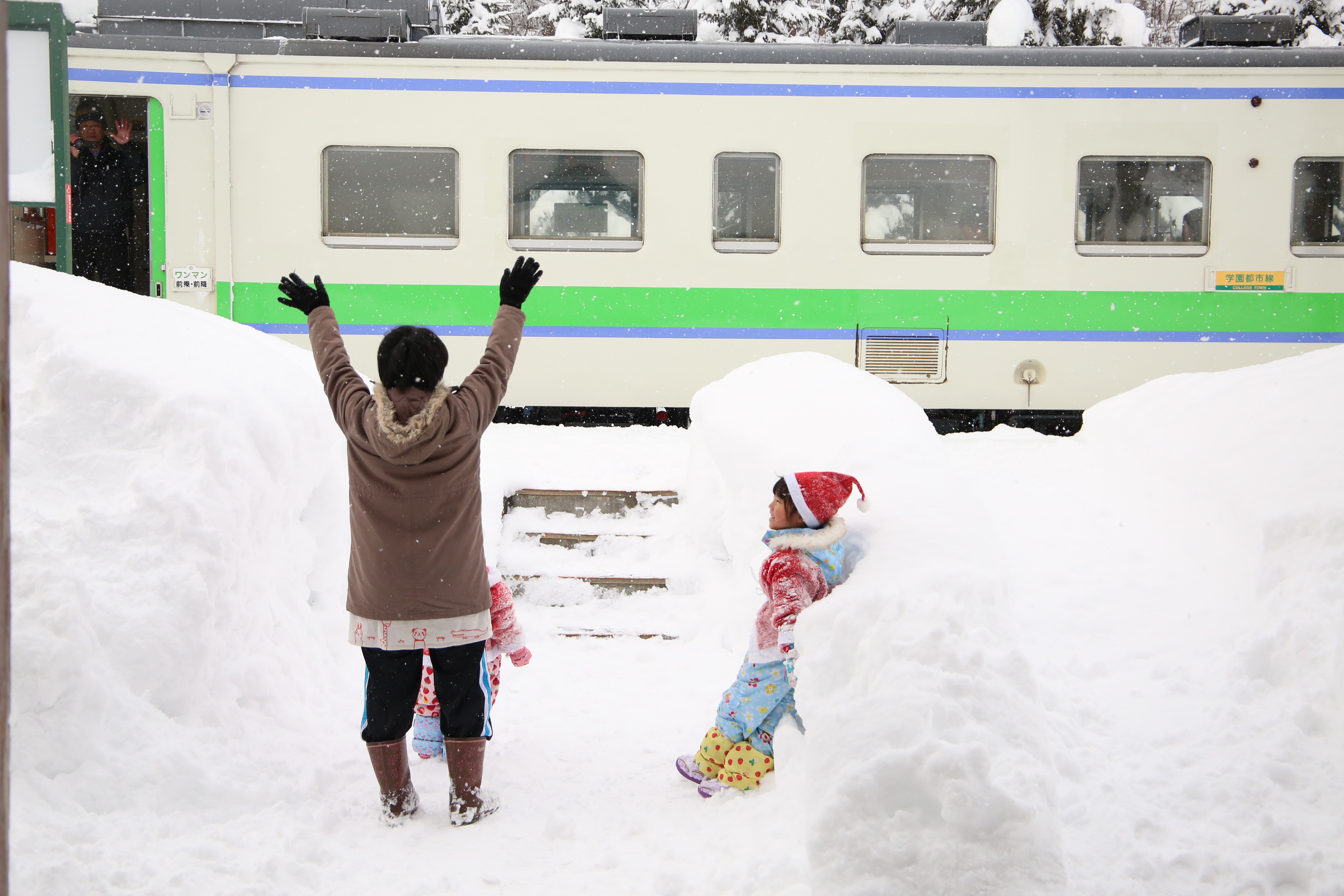 雪の中のホーム